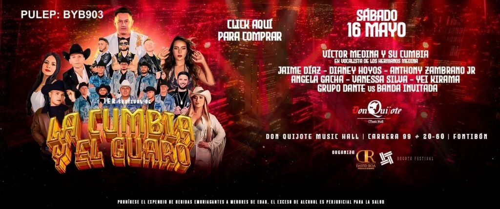 16/05/2026 8:00 PM – 17/05/2026 2:45 AM Don Quijote Music Hall Cra 99 # 20 -60 Fontibon 🔥 LA CUMBIA Y