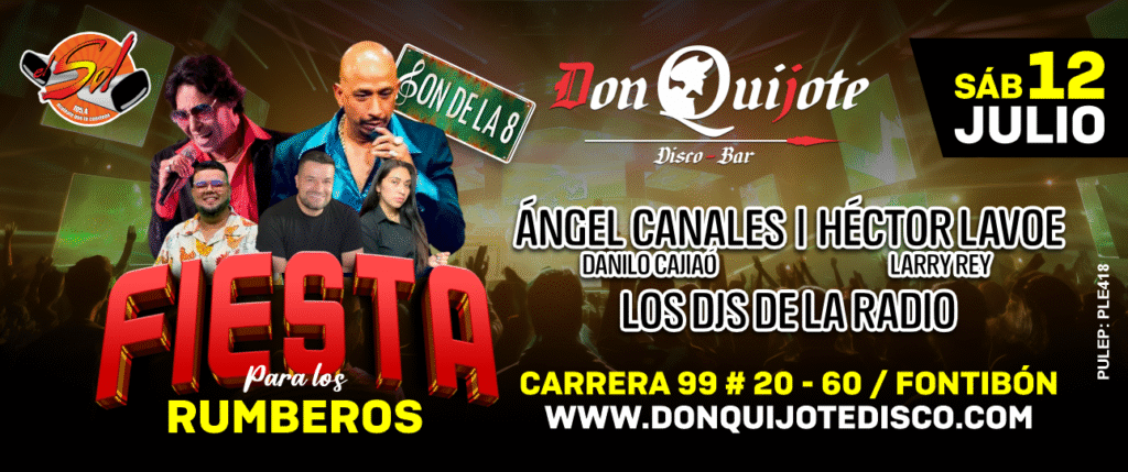 FIESTA PARA LOS RUMBEROS-Por Don Quijote Music Hall / 25/06/2025 12/07/2025 7:00 PM - 13/07/2025 2:30 AM Don Quijote Music Cra 99 # 20- 60 Fontibón -Bogotá