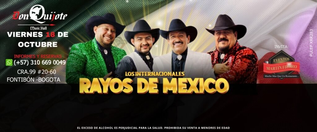 RAYOS DE MEXICOPor Don Quijote Music Hall / 10/08/2024 18/10/2024 7:00 PM Don Quijote Music Cra 99 # 20- 60 Fontibón -Bogotá