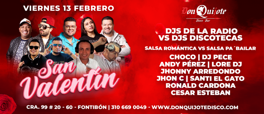 El próximo Viernes 13 de Febrero Celebra San Valentin Salsero♪ Una Batalla de Salsa Romántica Vs Salsa Pa´Bailar, En Vivo Disfruta de una Batalla Musical de los Djs de la Radio Vs Los Djs de la Discotecas.