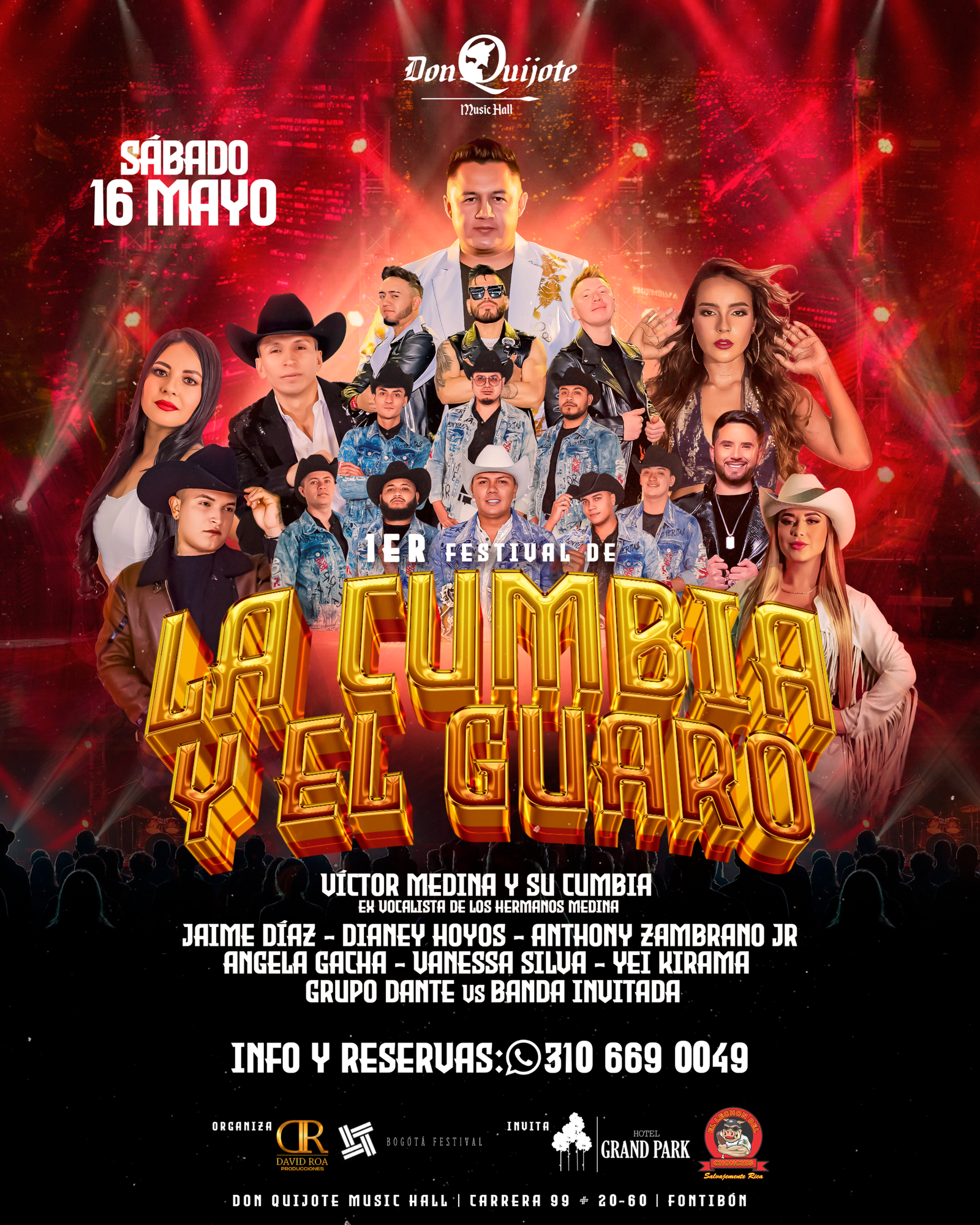 En tarima estarán Víctor Mendoza y su Cumbia, poniendo a bailar a todos con los grandes éxitos de la cumbia, junto al talento de Grupo Dante y Jaime Díaz, quienes completan una noche cargada de música en vivo y el mejor ambiente de rumba.